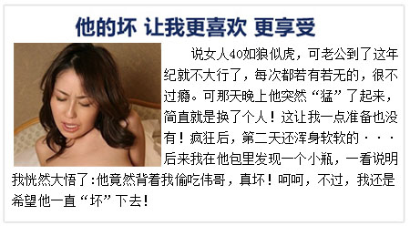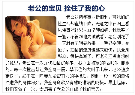 经过多年的打拼,在事业上面也有了小小的成就,从以前一家小公司的销售员到现在的全国500强企业的销售经理,在事业上有成就的同时,生活上却是非常糟糕,刚过四十,在性生活的时候就感觉力不从心了,根本不能满足三十五岁的妻子,都快要没自信了。一次同学聚会时老同学给我介绍了这个网站,试着买了3瓶,刚吃一片,感觉明显不一样了,看着妻子前所未有的满足感,心里暗自欢喜,重新找回了做男人的自信,仿佛回到了20岁的年纪,妻子每次都连连求饶,伟哥真是太棒了。